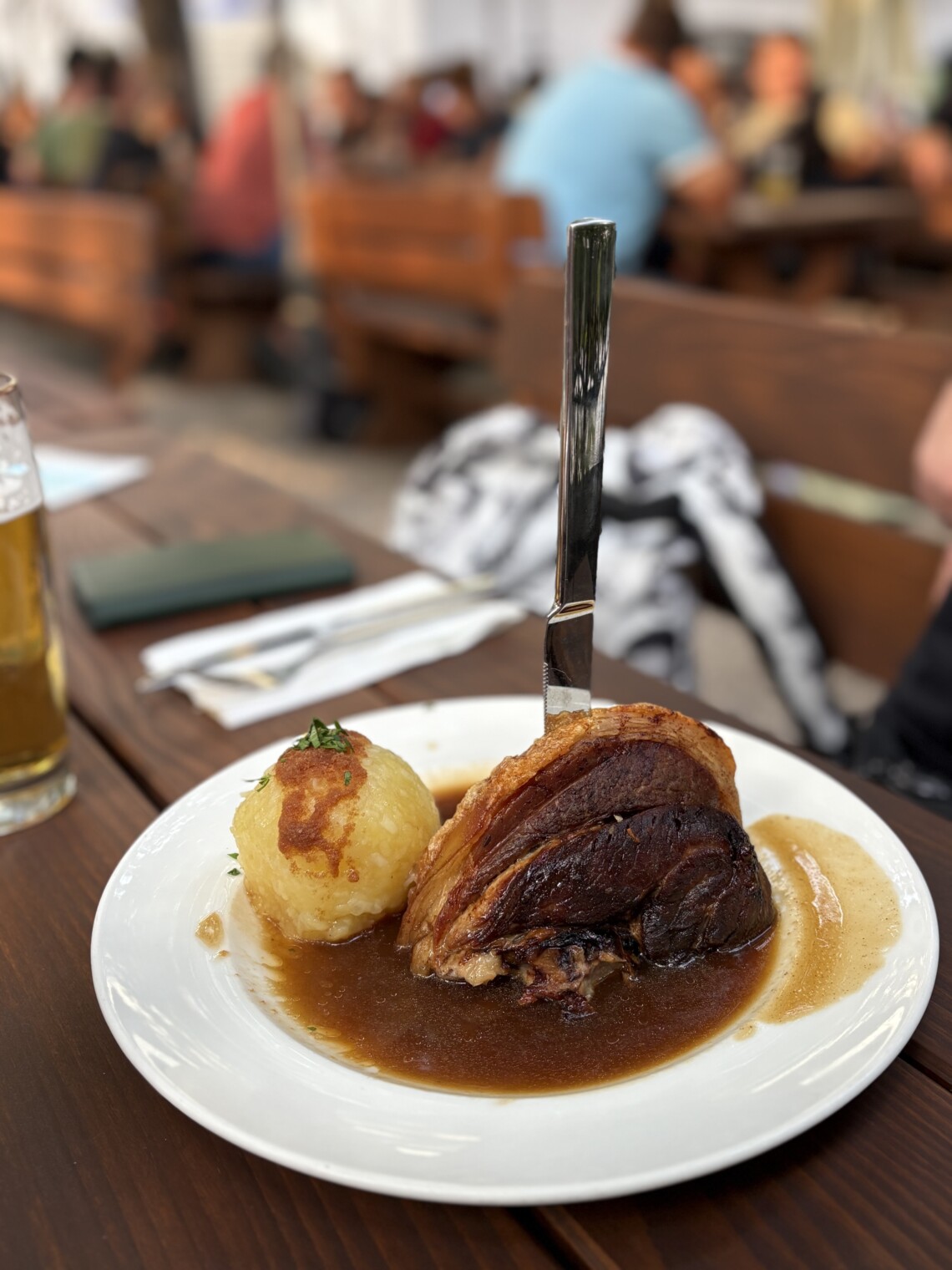 中心部から少し離れた「Hofbräukeller」では、比較的落ち着いて食事を楽しめました。