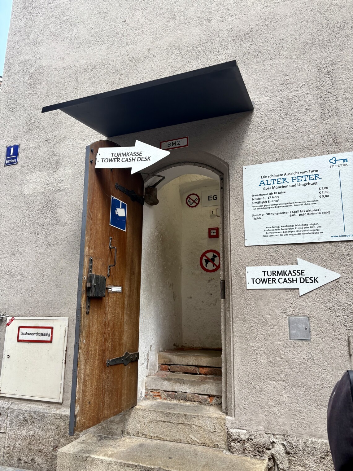 体力に自信がある方は、広場横の聖ペーター教会(Alter Peter)の塔に上がってみてください。