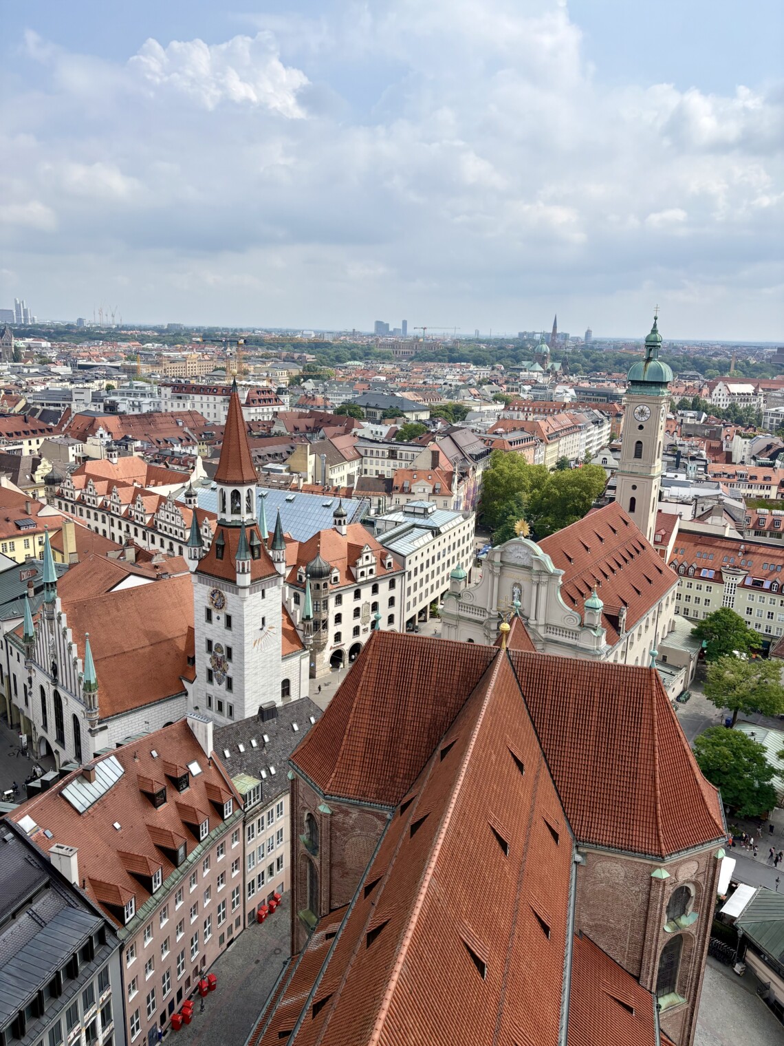 約300段の階段を登り切れば、オレンジ色の屋根が続くミュンヘンの美しい街並みを見渡せます。