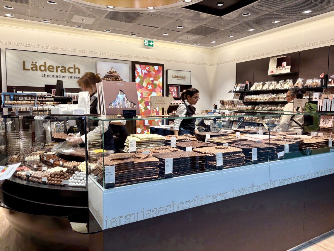 ▼チューリッヒ空港にもあるチョコレート屋さん「Läderach」のチョコがとてもおいしいので、最後のお土産購入にぜひ♩