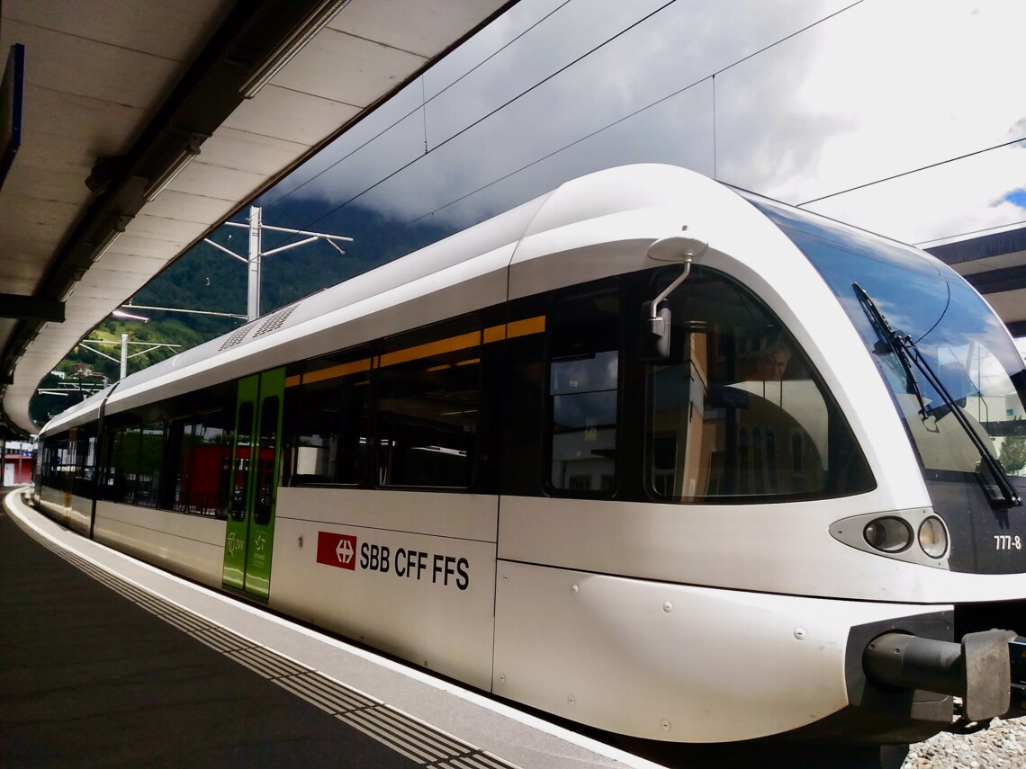 車内放送や周囲の会話から聞こえてくる言葉が、ドイツのドイツ語からスイスドイツ語(Schweizerdeutsch)へと変わっていくことにも注目してください。